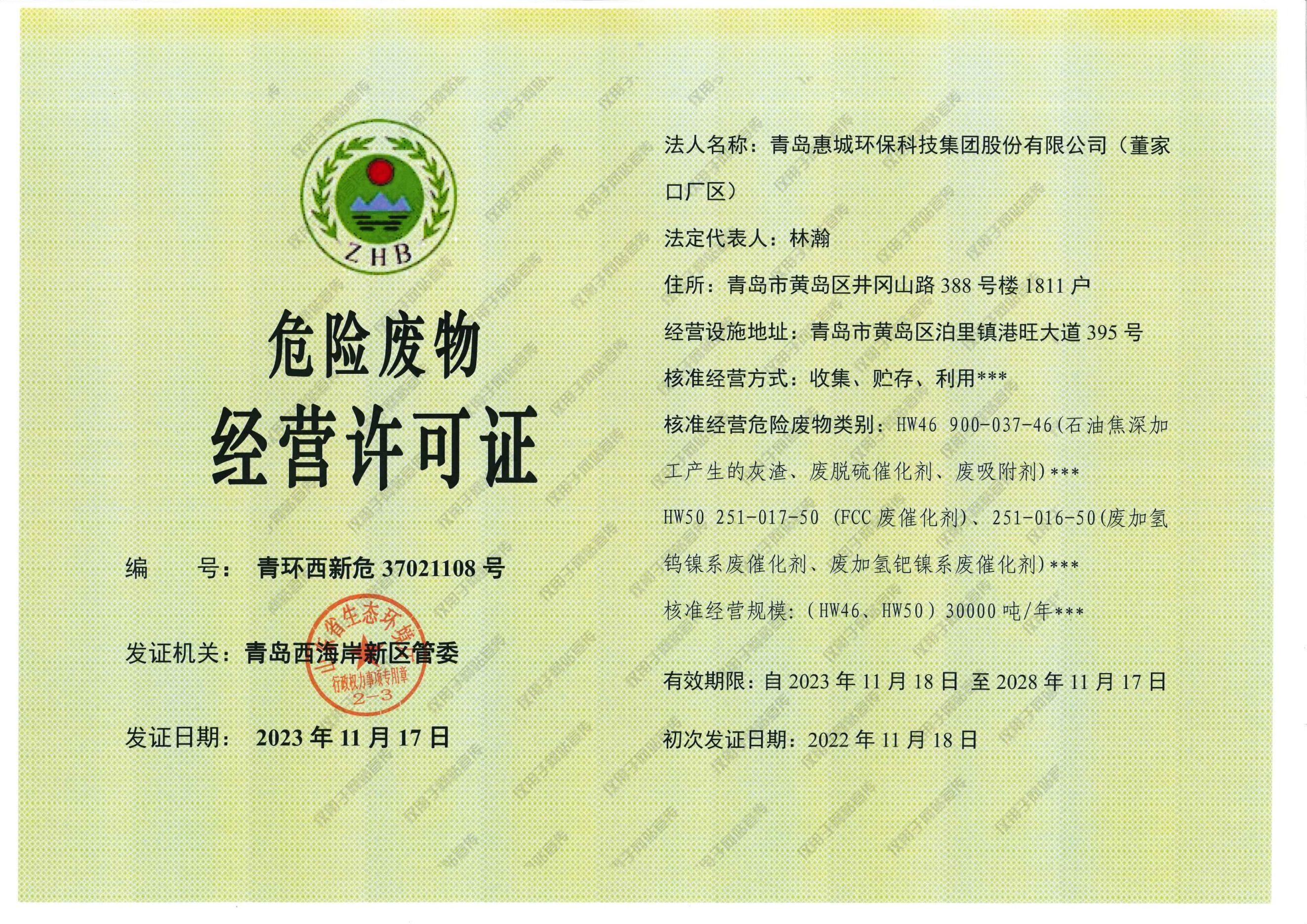 青島惠城環(huán)保科技集團股份有限公司