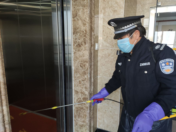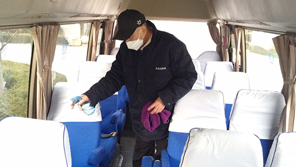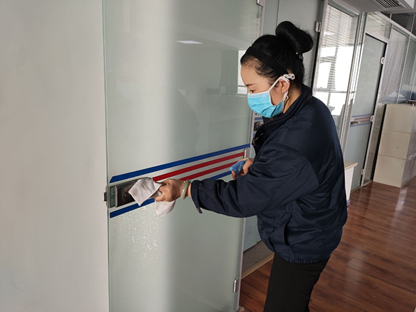 司為在崗員工發放了口罩、噴壺、消毒酒精等防護用品,每日對各工作場所、班車、車庫、電梯、宿舍等進行定點消毒。