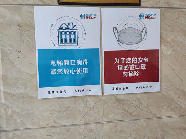 梯里貼上了暖心的抽紙,門把手也勤消毒做到重點防范。