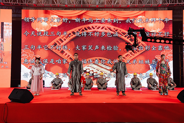 5點30分,文藝晚會正式開始。創(chuàng)意節(jié)目精彩紛呈,全場氛圍熱烈火爆。生產(chǎn)管理部的三句半編排讓人倍感新鮮,情景劇“惠城奇幻夜”天馬行空,舞美效果將晚會推向高潮,小品“相親”表演讓人捧腹,戲曲與勵志歌曲串燒HIGH翻全場……