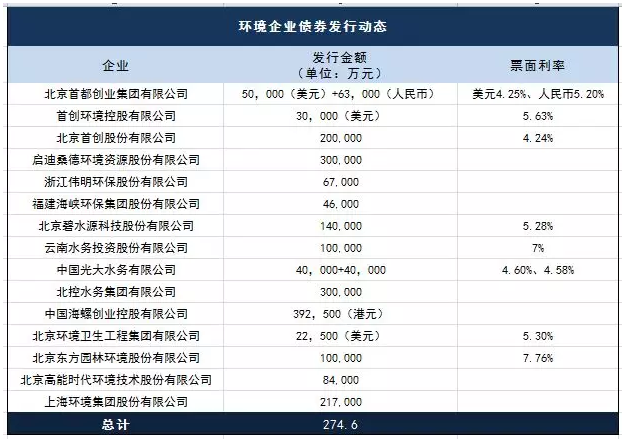 對于環境企業而言,發行債券是一種常見的融資手段,據不完全統計,2018年以來,環保上市企業的債券發行規模至少達到274.6億元人民幣。